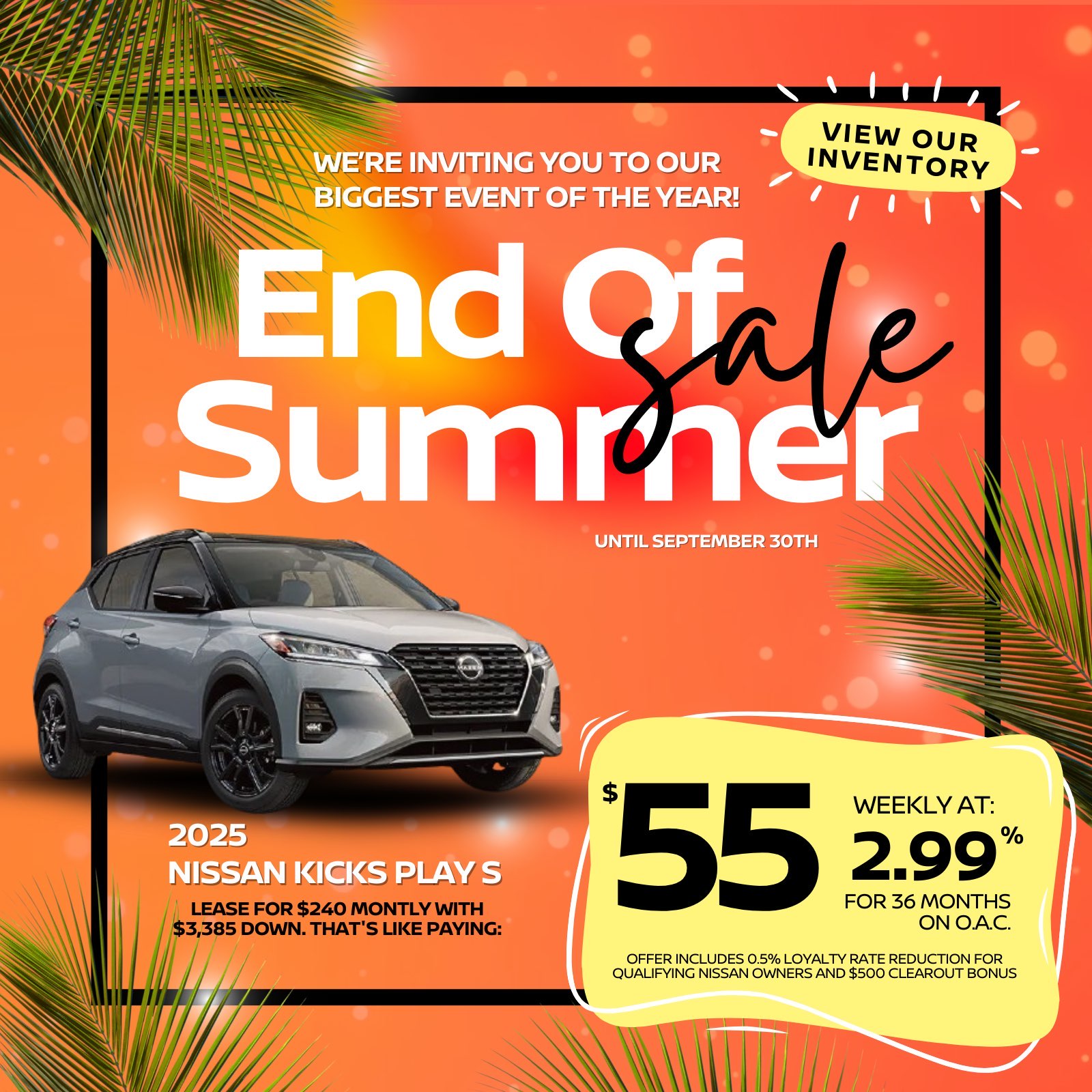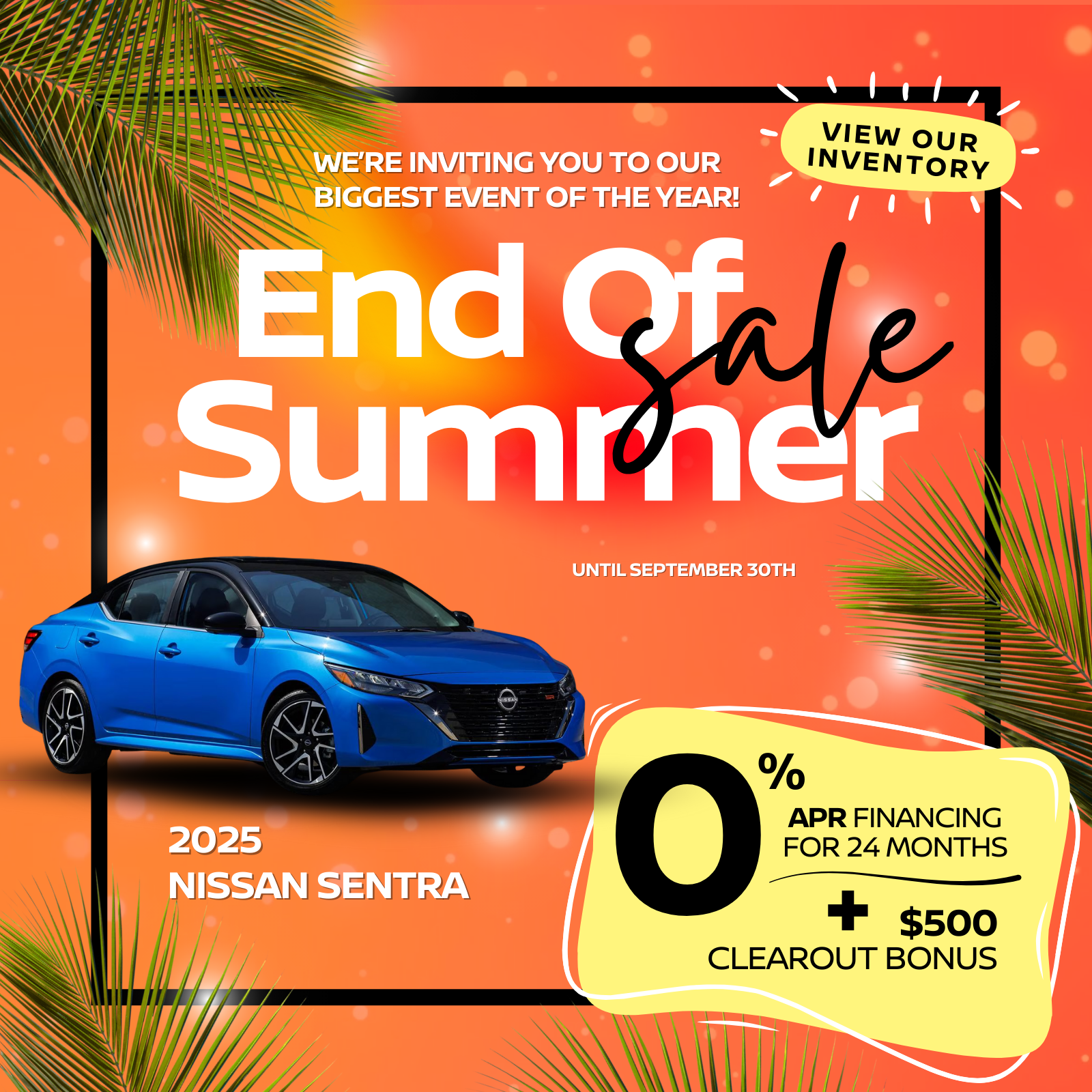 0% finance available on approved credit (OAC) for up to 24 months on 2025 Sentra models. $500 Clearout Bonus applied to eligible purchases. Offer valid until September 30, 2025. Conditions apply. See dealer for details.